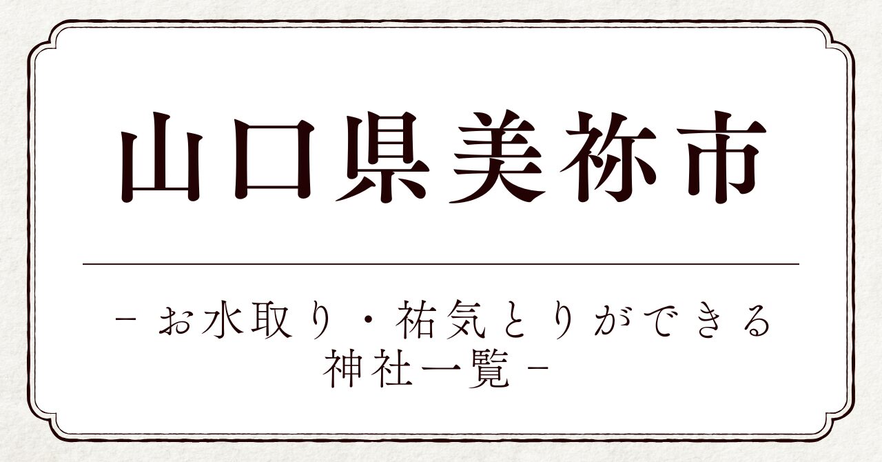 【山口県美祢市】お水取り・祐気とりができる神社一覧