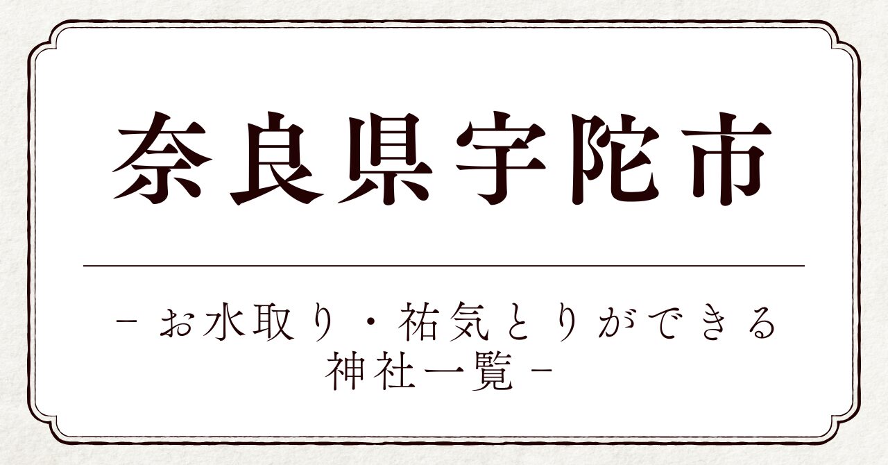 【奈良県宇陀市】お水取り・祐気とりができる神社一覧